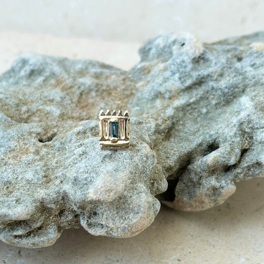 Holy temple single stud 14k gold & blue topaz